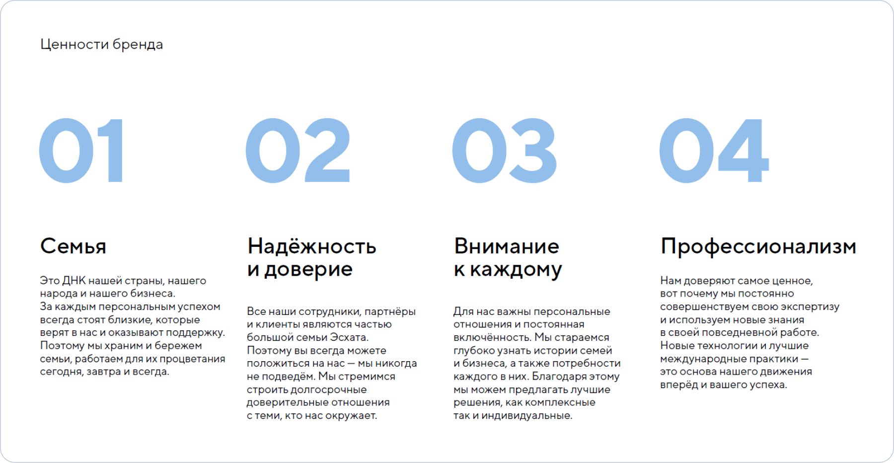 Нам всем важно понимать, для чего мы работаем и какие ценности разделяем внутри нашей организации. Нашу миссию и ценности очень важно сформулировать для самих себя, и руководствоваться ими в своей работе при разработке новых продуктов и сервисов, при общении с нашими клиентами и продвижении банка. Мы хотим, чтобы это были не просто слова, а осознанные ценности, которые близки всем нам